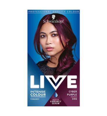 Live intense colour 046 cyber purple permanent hair dye.